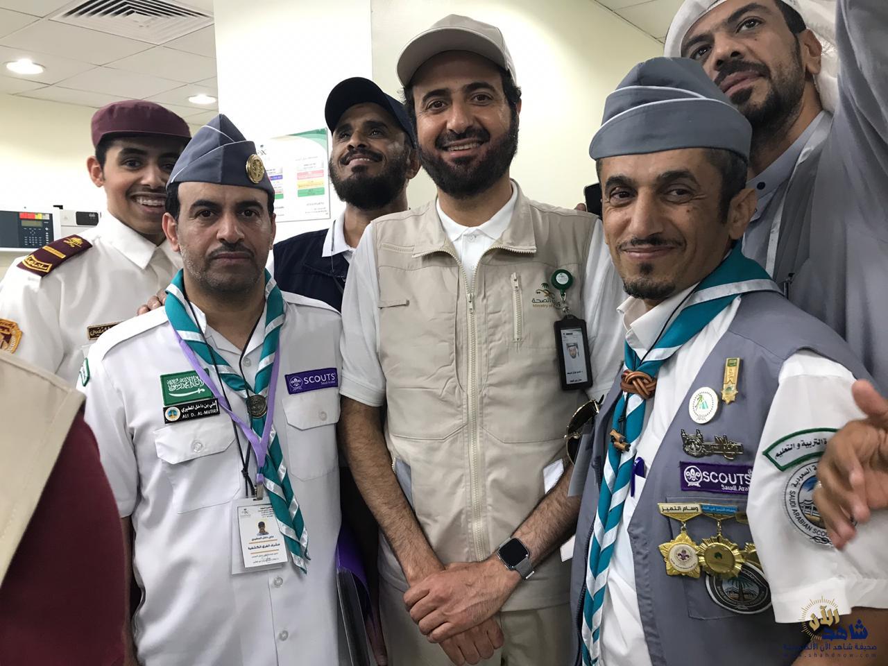 جاء ذلك خلال لقائه بأفراد الكشافة المتطوعين المساندين بمستشفيات منى الوادي ، ومنى الجسر في مشعر منى اليوم ، حيث ثمن معاليه البرامج والخدمات التطوعية الجليلة لأفراد الجوالة والكشافة الذين يقومون بها خلال موسم الحج كل عام ، والتعاون الكبير مع مختلف الجهات الحكومية ومع وزارة الصحة على وجه الخصوص ، مما يسهم في تنظيم المراجعين داخل المستشفيات ومراكز الرعاية الصحية .