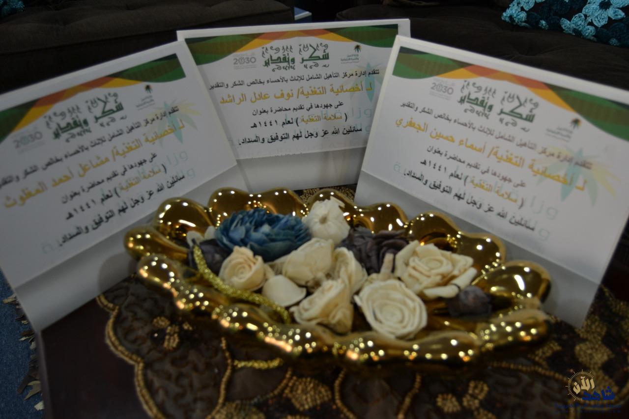 أقام مركز التأهيل الشامل للإناث بالأحساء متمثلا بقسم الأمن والسلامة برئاسةأ / أحلام الحيدر و أ/ هيلة الجمعان و بالتعاون مع مستشفى الملك فهد بالأحساء محاضرة توعوية تثقيفية بعنوان ( السلامة الغذائية ) يوم الخميس الموافق ١٤٤١/١/٦هـ في قاعة الإحتفالات الداخلية بالمركز القاها كلا من اخصائيات التغذية أ/ مشاعل المغلوث و أ/ اسماء الجعفري و أ/ نوف الراشد بإشراف عام من نائبة المديرة أ/ منيرة العميرين حيث تكلل الحضور عدد من منسوبات المركز