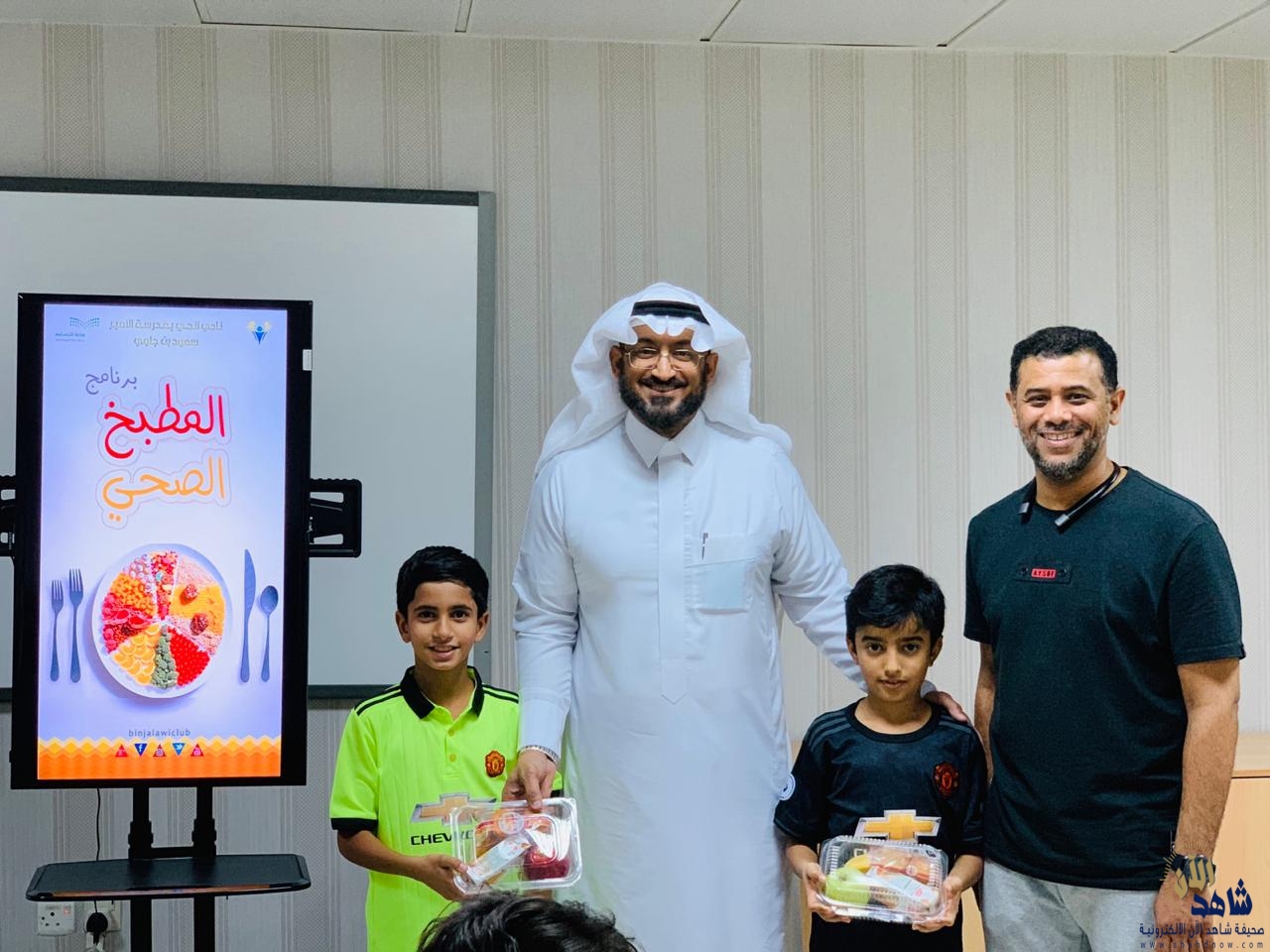 وفي نهاية البرنامج وزع مشرف البرنامج أ/ خالد الخميس بمشاركة قائد النادي بندر بن علي السلطان على الطلاب وجبات صحية خفيفة استمتع الطلاب بتناولها