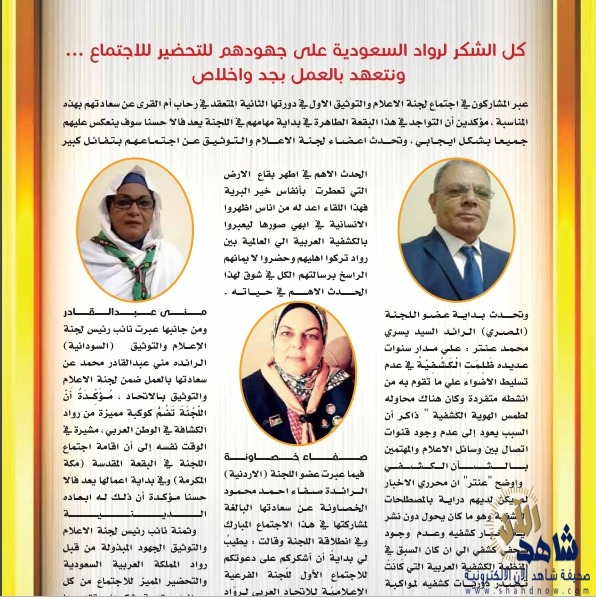 يذكر أن النشرة من اعداد الزميل محمد برناوي وإشراف لجنة الاعلام والتوثيق بالاتحاد العربي لرواد الكشافة والمرشدات