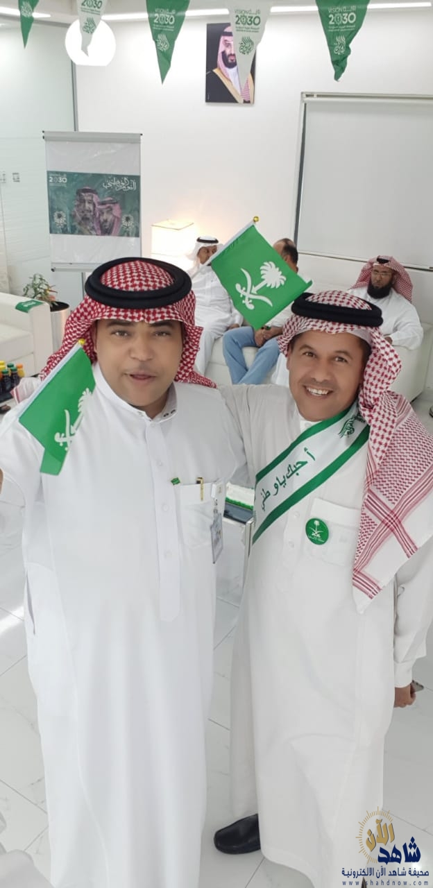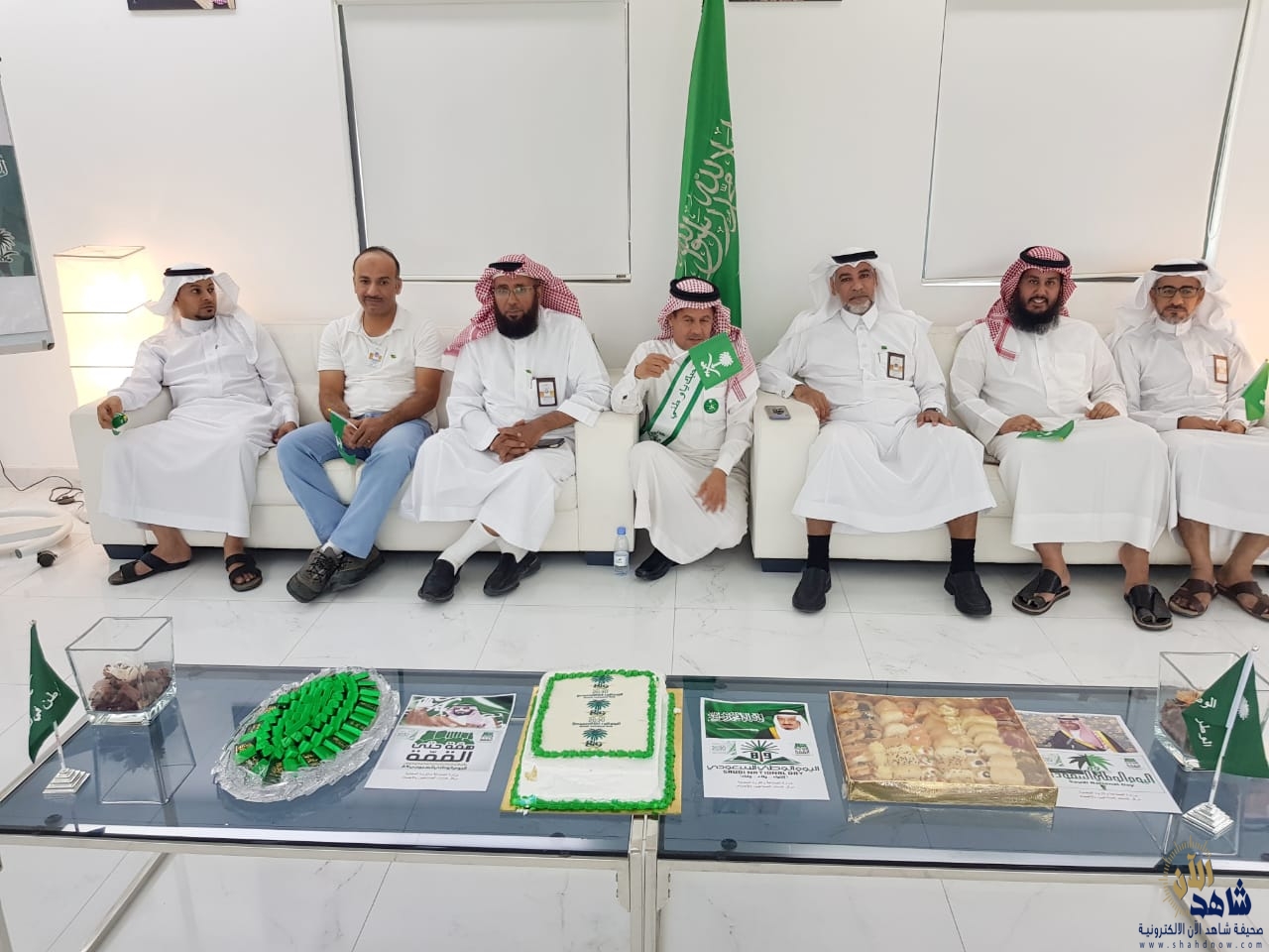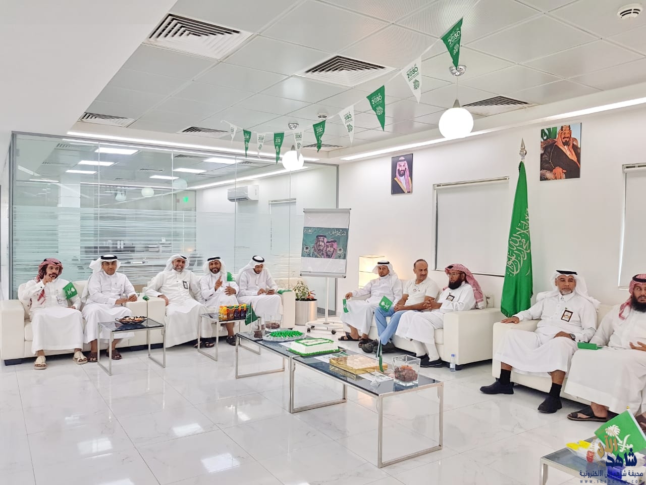 حيث تبادل الموظفون الكلمات في حب الوطن ونعمة المولى عز وجل على بلدنا بالرخاء والامن والامان في ظل حكومة خادم الحرمين الشريفين الملك سلمان بن عبدالعزيز حفظه الله وولي عهده الامين صاحب السمو الملكي الامير محمد بن سلمان أيده الله وأكد الحضور أمنياتهم برفعة شأن وطننا بشبابه الطموحين انطلاقا من شعار اليوم الوطني لهذا العام (همة حتى القمة) إلى شعار جديد في قادم الايام (همة تجاوزت القمة) بإذن الله تعالى