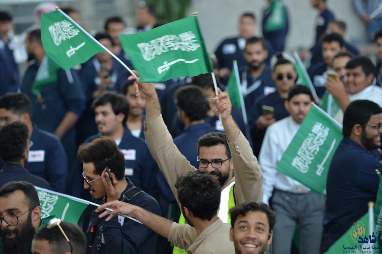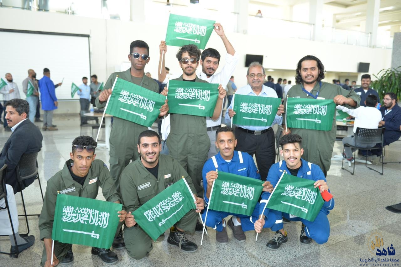 هذا وقد رفع منسوبي المعهد الوطني للتدريب الصناعي جميعهم أعلام المملكة العربية السعودية، وعلى أنغام شيلات وشعارات اليوم الوطني السعودي جدد الجميع ولائهم وحبهم للوطن الغالي أرضاً وقيادة وشعباً .