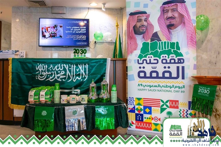 قامت إدارة خدمات المستفيدين بالاحتفال باليوم الوطني (89) بحضور سعادة وكيل الرئيس العام لشؤون المسجد الحرام الأستاذ أحمد بن محمد المنصوري وسعادة مدير إدارة خدمات المستفيدين الأستاذ جنادي بن علي مدخلي.