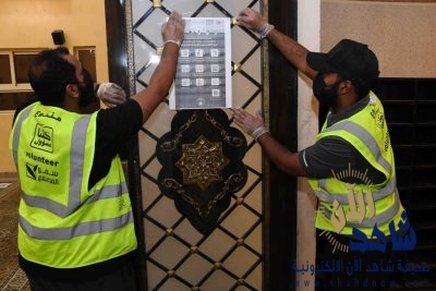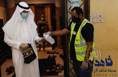 واثناء الدخول وتوزيع المصلين على المساجد القريبة عند الزيادة على الأعداد الممكنة، مشيراً إلى أن ذلك يأتي تماشيا مع الإجراءات الاحترازية