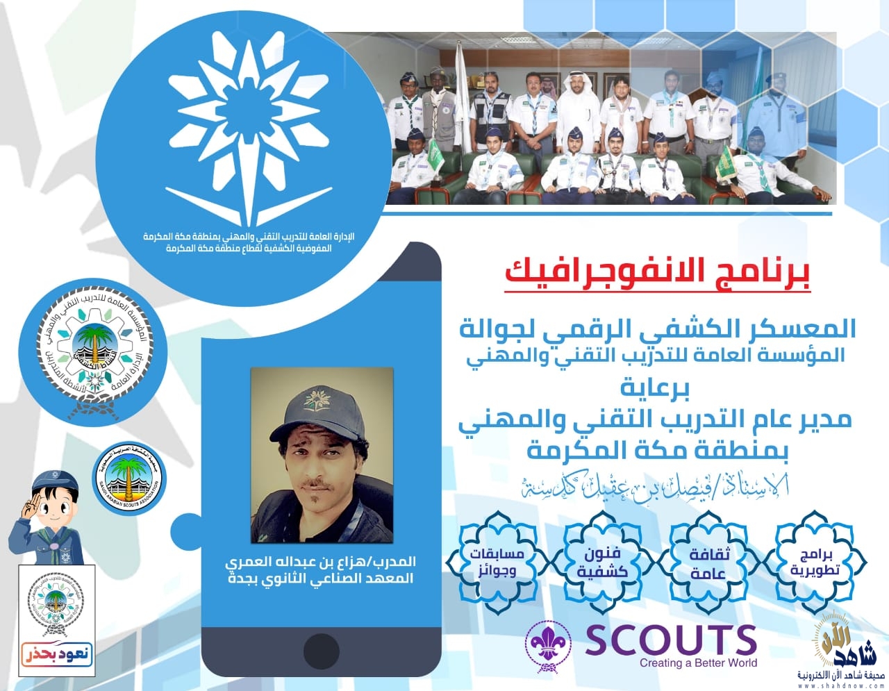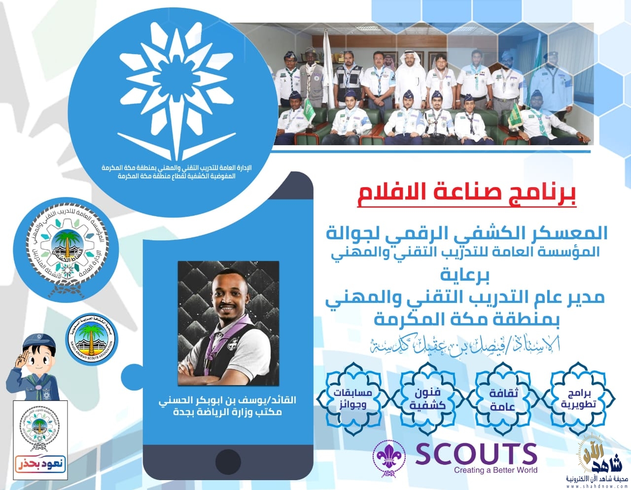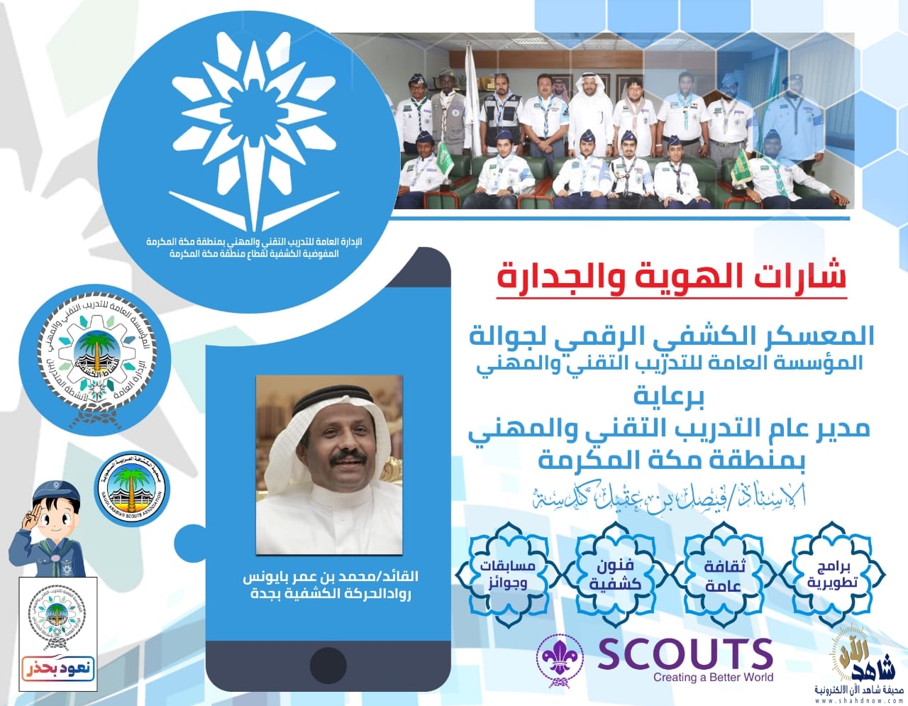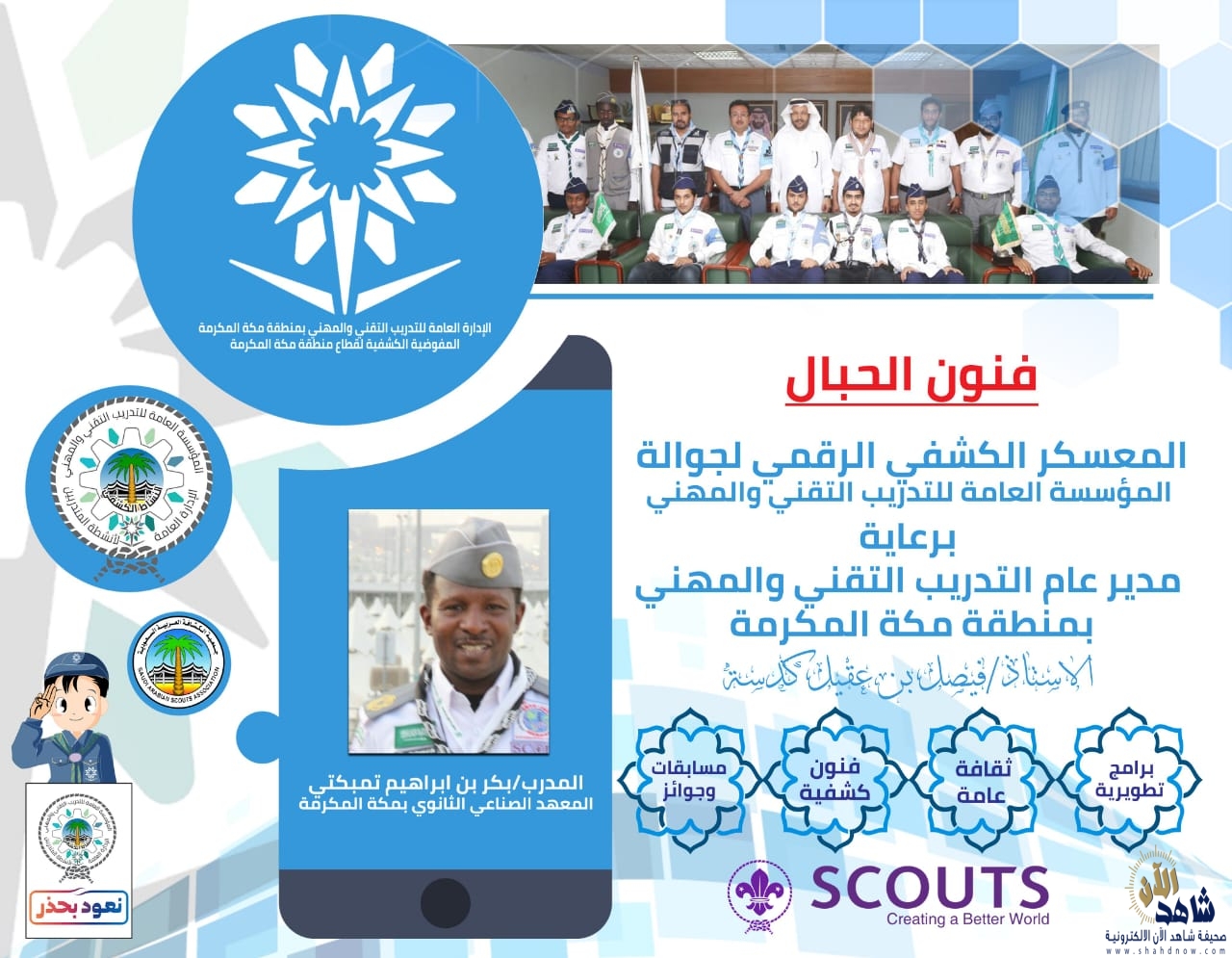 تنظم الإدارة العامة للتدريب التقني والمهني بمنطقة مكة المكرمة خلال الفترة من 19 – 21 من شهر ربيع الأول الجاري ، فعاليات المعسكر الكشفي الرقمي لجوالة المؤسسة العامة للتدريب التقني والمهني .