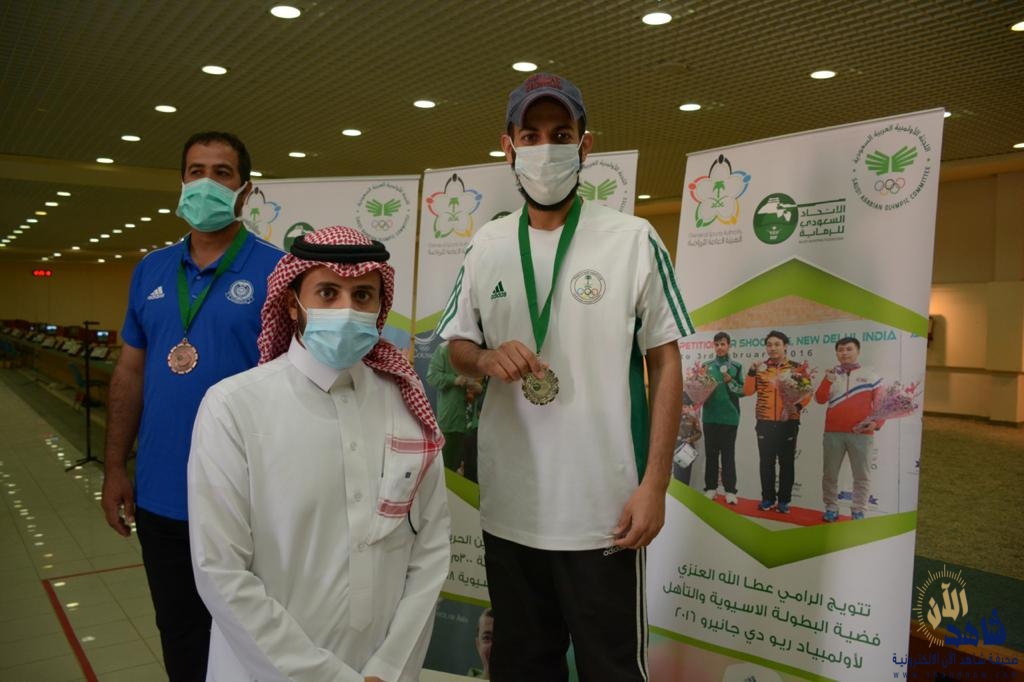 وفي منافسات المسدس ضغط الهواء حصل الرامي عطا الله نداء العنزي على المركز الأول والميدالية الذهبية برقم 572 ، وجاء بالمركز الثاني والميدالية الفضية الرامي محمد مانع العمري وبرقم 571 ، وجاء بالمركز الثالث والميدالية البرونزية الرامي محمد فهد الهلالي وبرقم 565.