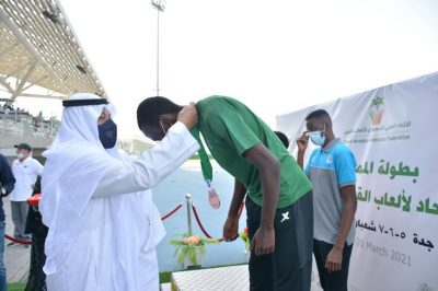 هنأ نائب رئيس الاتحاد الدولي لألعاب القوى الأمير نواف بن محمد اللجنة الفنية بالاتحاد السعودي لألعاب القوى على نجاح بطولة كأس الاتحاد السعودي لألعاب القوى التي أقيمت على مدارس ثلاثة أيام على ميدان ومضمار مدينة الملك عبدالله الرياضة بمحافظة جدة ، مباركا لرئيس نادي الهلال الأستاذ فهد بن نافل وعضو مجلس الإدارة المشرف على الألعاب المختلفة بالنادي الأستاذ عبدا لأله المقرن والجهازين الفني والإداري لألعاب القوى بالنادي على تحقيق فريق العاب القوى بطولة كأس الاتحاد السعودي لالعاب القوى ، مؤكد أن القادم سيكون أفضل – بإذن الله –