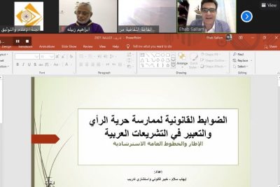 أكد الخبير والمستشار القانون الأستاذ إيهاب سلّام أن التشريعات القانونية والأنظمة الإدارية كفلت للإنسان حرية التعبير في حدودها وضوابطها ، مشيرا في الوقت نفسه إلى أهم المرجعيات الدولية لحرية الرأي والتعبير منذ العام 1945 وحتى آخر ما صدر في العام 1989م جاء ذلك في الجلسة التدريبية الرابعة ضمن دبلوما الإعلام والتسويق الكشفي الذي يقيمه الاتحاد العربي لرواد الكشافة والمرشدات بالتعاون مع معهد الأهرام الإقليمي في الفترة من 14 من شهر مارس الجاري وحتى 4 من شهر أبريل القادم من هذا العام 2021