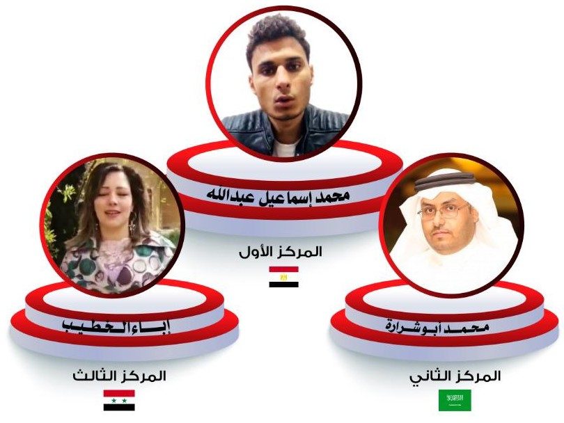فاز بالمركز الأول الشاعر محمد إسماعيل عبدالله سويلم من مصر ومقدار الجائزة “عشرة آلاف ريال” ، وفاز بالمركز الثاني الشاعر محمد أبو شرارة من السعودية ومقدار الجائزة “ستة آلاف ريال” ، وفازت بالمركز الثالث الشاعرة إباء الخطيب من سوريا ومقدار الجائزة” أربعة آلاف ريال”.