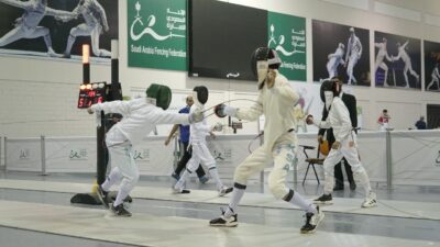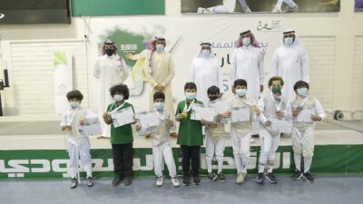 توج رئيس الاتحاد السعودي للمبارزة أحمد الصبان أبطال الجولة الفضية لبطولة المملكة للمبارزة تحت 11 و15 عام للأسلحة الثلاث سايبر، فويل، ابيه التي اختتمت اليوم في صالة المبارزة بمدينة الأمير سعود بن جلوي الرياضية في الدمام، بمشاركة 120 لاعبا، وبحضور نائب رئيس الاتحاد، المهندس عامر المبيض والمدير التنفيذي عبدالله السنيد.