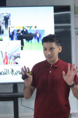 واستهل الحاجي محاضرته بعرض جزء من سيرته في مجال التصوير الفوتوغرافي الرياضي وخبرته الواسعة في المجال، ثم بدأ محاضرته بالحديث في عدد من النقاط التي تفيد المشاركين بالورشة، وبدأها بكيفية الدخول في مجال التصوير الرياضي وثم كيفية تطوير المصور نفسه في هذا المجال وما هي الأدوات التي يستخدمها في التصوير وأبرز النقاط التي تطور المصور، كما شرح للحضور المواقع التي من خلالها أخذ معلومات عن التصوير، فيما أوضح لهم النقاط التي يبتعدون عنها في التصوير وكيف يتنوع في التصوير الرياضي.