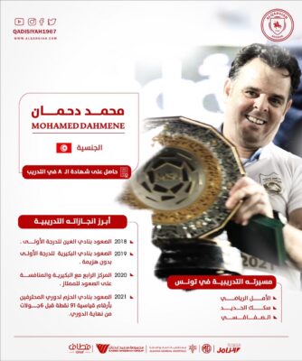 تعاقدت إدارة نادي القادسية، مع المدير الفني التونسي محمد دحمان ليتولى تدريب فريق الأول لكرة القدم بالنادي في الموسم المقبل.