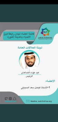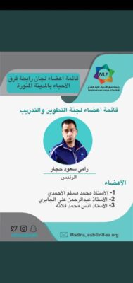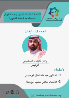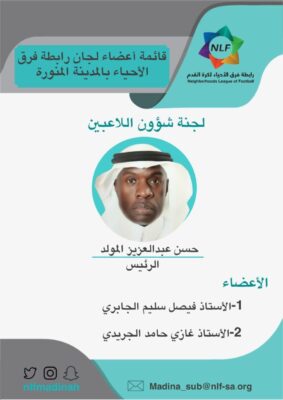 اعتمد رئيس رابطة فرق الأحياء الفرعية لكرة القدم بالمدينة المنورة الأستاذ محمد ماهل الحربي قائمة أسماء أعضاء لجان الرابطة، وتضمنت القائمة مجموعة من الكفاءات الجيدة رياضياً في عدة مجالات مختلفة على النحو التالي: