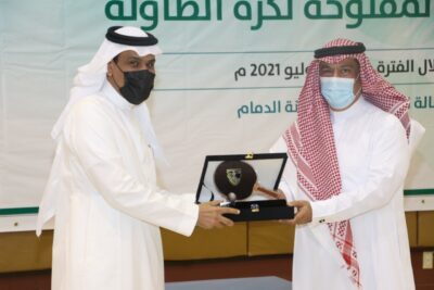 لمدير مكتب المنطقة الشرقية على تعاونهم المستمر مع اتحاد الطاولة لإنجاح بطولاته وقدم درع تذكارياً ،كما تم تقديم درع لإدارة نادي الاتفاق لتعاونه مع اتحاد الطولة على استضافة بطولات كرة الطاولة.