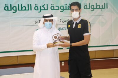 لمدير مكتب المنطقة الشرقية على تعاونهم المستمر مع اتحاد الطاولة لإنجاح بطولاته وقدم درع تذكارياً ،كما تم تقديم درع لإدارة نادي الاتفاق لتعاونه مع اتحاد الطولة على استضافة بطولات كرة الطاولة.