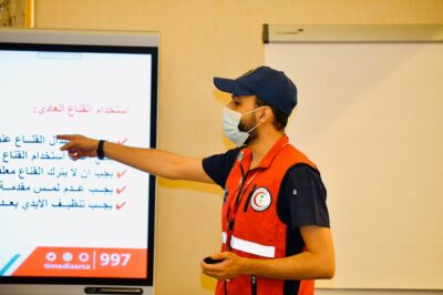 نظمت وزارة الشؤون الإسلامية والدعوة والإرشاد ممثلة بفرعها بمنطقة مكة المكرمة , دورة تدريبية في مجال الإسعافات الأولية والوقائية من فيروس كورونا المستجد استمرت ليومين ، وذلك لجميع موظفي الفرع المكلفين لأعمال حج هذا العام 1442هـ, بالتعاون مع هيئة الهلال الأحمر السعودي.