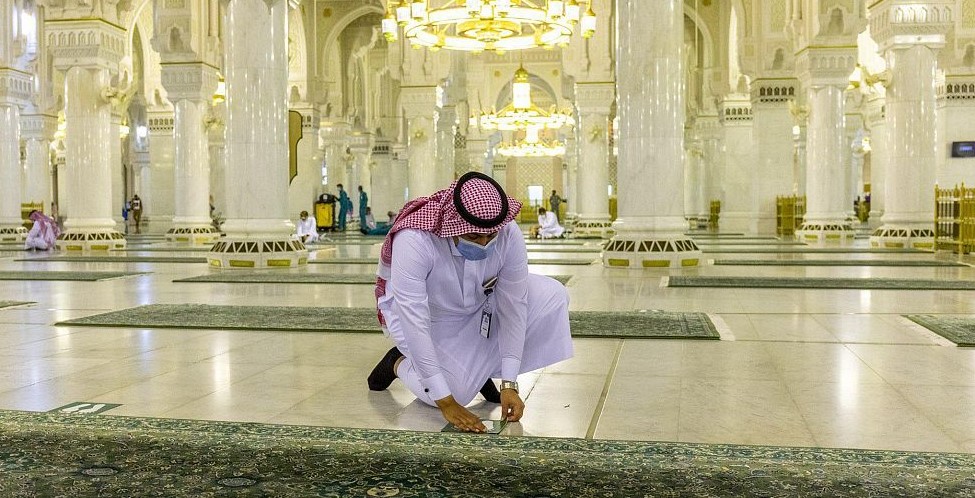 أعادت الرئاسة العامة لشؤون المسجد الحرام والمسجد النبوي ممثلة في الإدارة العامة للحشود والتفويج ترتيب ملصقات التباعد الجسدي بما يتناسب مع أعداد الحجاج بصحن المطاف ومطاف الدور الأرضي والأول بالمسجد الحرام؛ لمواكبة خطة الرئاسة لموسم حج هذا العام .