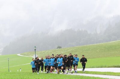 وكان النموذجي قد واصل برنامجه التدريبي اليوم الأحد على فترتين صباحية ومسائية، أُجريت الأولى في محيط مقر الإقامة بين الجبال والمرتفعات وسط حماس وتفاعل من اللاعبين الذين قطعوا مسافة قرابة 14 كلم.