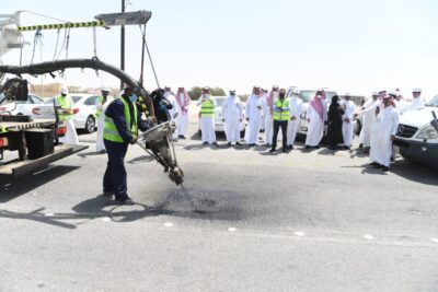 عقب ذلك قام معاليه والوفد المرافق بجولة ميدانية أطلع خلالها على سير عمل الآليات والمعدات ذات التقنيات العالية، في عدد من المواقع بحاضرة الدمام، شاهد أداءها من خلال عملها ونتائج الأعمال السابقة لمعالجه عناصر التشوه، حيث اطلع أيضا على أعمال معالجة التشوه في طريق الملك فهد بن عبد العزيز وطريق الأمير محمد بن فهد في مدينه الدمام، بعدها استكملت الجولة في طريق الأمير سلطان وشارع طارق بن زياد وشارع سعد بن أبي وقاص في الظهران، اطلع الوفد خلالها على مظاهر تحسين المشهد الحضري من خلال تشجير الطرق بأشجار مختلفة ومتنوعة على امتداد الطرق الرئيسية، وعدد من الشوارع بمدينه الظهران، حيث استعرض رئيس بلدية الظهران المهندس محمد الجاسم، أهم العناصر التي تمت في هذه الشوارع، والأحياء، كما استمع معالي الأمين والوفد المرافق لشرح عن عمل آليات معالجات مظاهر التشوه البصري، أبرزها نماذج من الخرسانة الممشطة كإحدى النماذج الناجحة على الطرق وداخل الأحياء، بعدها انتقل معالي أمين المنطقة الشرقية، والمشرف العام على إدارة دعم وتمكين الأمانات بالوزارة، الى محافظة الخبر، حيث قدم لهم رئيس بلدية محافظة الخبر المهندس سلطان الزايدي، شرحا عن أعمال معالجة عناصر التشوه البصري، في طريق الأمير فيصل بن فهد، وشارع الأمير تركي في محافظة الخبر، واطلعوا خلالها على نماذج متنوعه من مظاهر تحسين المشهد الحضري والمواقع التي تمت معالجتها، كما قاموا بجولة على بعض الأحياء والمشاريع التي تتوافق مع برامج جودة الحياة، وأنسنة المدن، هذا بالإضافة الى بعض النماذج الناجحة داخل المحافظة.