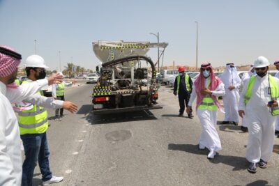 كما استعرض معاليه مؤشرات قياس الأسبوع السابع منذ بدء الخطة، حيث تم الإشارة من خلالها للتقنيات الحديثة للرصد والمعالجة وهي معدة )Jetpatcher) لمعالجة حفر الشوارع، والتي من مميزاتها السرعة في صيانه الحفر، حيث أنها لا تحتاج الى إغلاق الطرق وقت طويل، وتستغرق مدة صيانه الحفرة ٢-٤ دقائق، وسهلة وبسيطة التعامل، ولا تحتاج الى إغلاق كلي للطرق، بالإضافة الى رصد عناصر التشوه البصري باستخدام معدة المسح الضوئي ذات التقنيات العالية، التي بإمكانها مسح أكثر من 200 كيلو متر طولي خلال يوم واحد، وتكفي لمعالجة ما بين ٥٠٠ و600 متر مربع داخل الأحياء، لرصد مظاهر التشوه وارسال إحداثياتها لغرفة العمليات، بالإضافة الى معدة التنظيف المائي للدهانات المرورية، وإعادة الدهان، ومعدة إصلاح الأرصفة (البردورات الخرسانية)، ومواد ردم الحفر وإعادة الردم حول المنهولات باستخدام خلطة الشرقية، بعدها اطّلع معاليه والحضور على نماذج من معالجات المشهد الحضري لكافة البلديات.