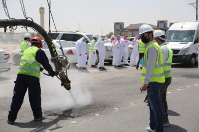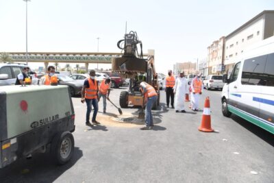 وأشار معاليه لآلية إدارة ومتابعة أعمال التشوه البصري، والتي من شأنها متابعة وتنفيذ الإشراف المباشر على خطة تصريف مياه الأمطار، وذلك عبر معدات متنقلة لنزح مياه الأمطار والدخول في المواقع المتضررة التي قد تحدث لنتيجة ارتفاع منسوب مياه الأمطار، والتي تعمل على مدار ٢٤ ساعة وتبلغ قدرتها لنزح المياه ٧٢٠ متر مكعب في الساعة، وتخفيض منسوب المياه الجوفية للمنطقة الشرقية، وإجراء فرضيات وتمارين لرفع كفاءة منسوبي الأمانة، ومتابعة المشاريع، بالإضافة لإدارة مواسم المنطقة الشرقية فيما يخص أعمال لجنة السلامة والجودة.