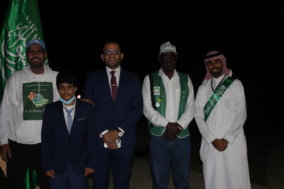 وتضمن الاحتفال برنامجا ثقافيا واجتماعيا اشتمل على إقامة مسابقة ثقافية تهدف إلى التعريف عن مناطق المملكة المختلفة بحصول الحاضرين على نموذج مخصص ومعد والمرور على “بوثات” المناطق المختلفة والاجابة على الأسئلة الموضوعة ثم الاستماع إلى تعريف مبسط عن كل منطقة والحصول على هدية رمزية ، إلى جانب الانشطة المصاحبة كتجربة الحضور استخدام الحناء في الزينة إلى جانب عرض الملابس التراثية لبعض مناطق المملكة ، على انغام الأناشيد الوطنية