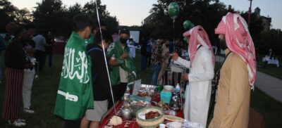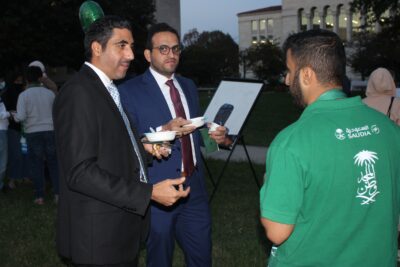 أحتفل نادي الطلبة السعوديين في الجامعة الكاثوليكية الامريكية في واشنطن مساء يوم أمس الخميس باليوم الوطني الـ91 للمملكة العربية السعودية ، وحضر الاحتفال مدير الشؤون الثقافية الاجتماعية بالملحقية الثقافية السعودية بواشنطن الأستاذ عبدالكريم العبثاني ، ومساعد الملحق العسكري بواشنطن وعدد من المسؤولين بالجامعة وأعضاء النادي من الطلاب والطالبات وعدد من السعوديين وطلاب الجامعة من الجنسيات المختلفة