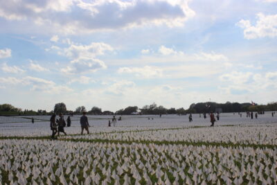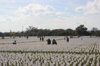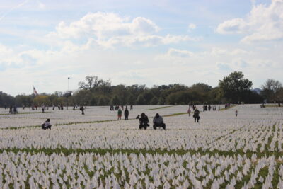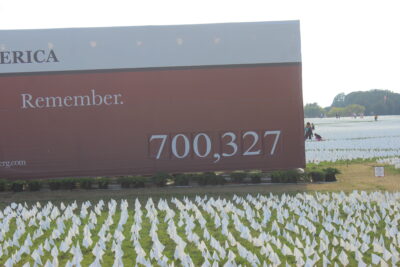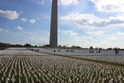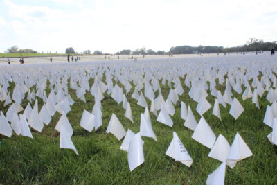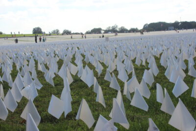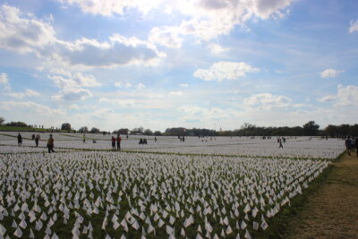زرعت الفنانة Susan Brennan Furstenbergالبالغة من العمر 62 عاما أكثر من 700 الف راية بيضاء في معرضها الفني المقام في الهواء الطلق على مساحة 80937.09مترا مربعا (20فدان) في حديقة المجمع الوطني National Mall بالعاصمة الامريكية واشنطن وبجوار نصب واشنطن التذكاري تكريما لضحايا الولايات المتحدة الامريكية الذين فقدوا ارواحهم بسبب فيروس كورونا المستجد COVID-19 ليظل ذكراهم قائمة
