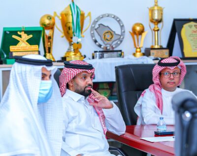 أستقبل رئيس نادي هجر الاستاذ حمد العريفي المديرالتنفيذي لدوري FDL الاستاذ طلال العبيدي يرافقه مدير المشاريع والعلاقات الدولية الاستاذ فارس الأحمري ومدير الفعاليات والمسؤوليةالمجتمعية الاستاذة نورة القحطاني .