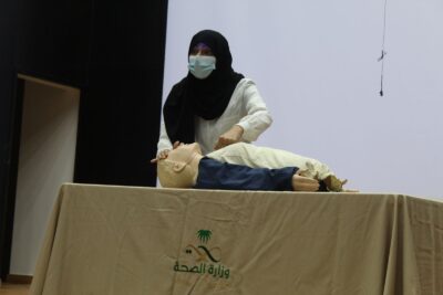 نظمت الكلية التقنية للبنات بالأحساء بإشراف المساعد الصحي أستاذة امينة الحسن وبالتعاون مع وزارة الصحة ورشة عمل بعنوان (الإسعافات الأولية) صباح اليوم الأربعاء الموافق 29 صفر الجاري؛ حيث بلغ عدد الحضور70 متدربة ومنسوبه من خلال أركان جرى خلالها تقديم التوعية التثقيفية وذلك حسب الفئة العمرية لمبادئ “الإسعافات الأولية”.