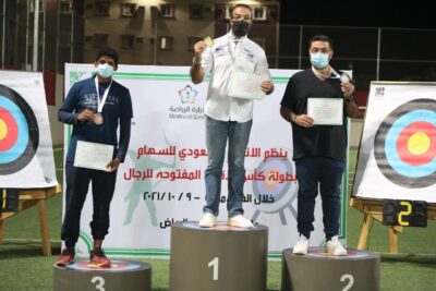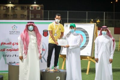 توج الأستاذ مشعل بن عبدالمحسن الحكير رئيس مجلس إدارة الاتحاد السعودي للسهام وبحضور الأستاذ يوسف الحميد الرئيس التنفيذي لنادي الرياض، الفائزين بالمراكز الثلاثة الأولى في بطولة كأس الاتحاد المفتوحة لجميع الفئات السنية للرجال والتي أقيمت خلال الفترة من 5-9 أكتوبر الجاري على ملاعب نادي الرياض بمشاركة أكثر من 60 رامياً من مختلف مناطق المملكة تنافسوا على 7 فئات بمختلف المسافات.