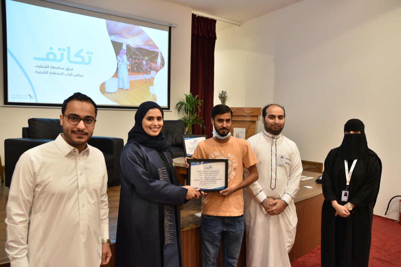 كرم مجلس شباب المنطقة الشرقية بمحافظة القطيف مجموعة شبابية القطيف وذلك نظير حصولها على جائزة ملتقى المبادرات التطوعيه والانسانيه على مستوى الوطن العربي ضمن 20 مبادرة تفوقو على اكثر من 600 مبادرة .