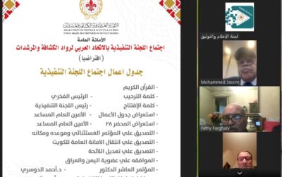 وكان قد تراس الاجتماع رئيس اللجنة التنفيذية بالاتحاد الرائد الكشفي “المصري” فتحي بن محمود فرغلي بحضور أعضاء اللجنة التنفيذية نائب رئيس اللجنة التنفيذية “الأردني” الرائد الكشفي خليل جميل ، والأعضاء الرائد الكشفي “الاماراتي” الدكتور أحمد الدوسري من الامارات العربية المتحدة ، والرائد الكشفي “الكويتي” الأستاذ محمد الدبيان ، والرائد الكشفي “الليبي” ميلود كليله ، والرائد الكشفي “الليبي” الطاهر التومي ، إلى جانب الأمناء العموم المساعدين الرائد الكشفي السعودي حسين سهل ، والرائدة آسية فتح الله من تونس ، وضيوف شرف أخرون في مقدمتهم الرئيس الفخري للاتحاد “السعودي” الأستاذ الدكتور عبدالله الفهد