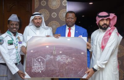 وكان من استقبالهم فرقة كشافة شباب مكة ، وأطلع الوفد على اعمال الجمعية في خدمة قاصدي البيت الحرام من الحجاج والمعتمرين ، ثم تجولوا على معرض جمعية الاحياء برفقة مدير التطوعي بالجمعة الأستاذ مفرح عسيري وعقب الجولة حضر الوفد حفل خطابي مبسط نظمته فرقة كشافة شباب مكة التابعة للجمعية ، بدا بالقرآن الكريم ، ثم عبارات ترحيبية باللغة الإنجليزية القاها الكشافة عبد الرحمن التمبكتي ، واخر بالفرنسية القاها الكشافة محمد الصامطي ، وبلغة الهوسا القاها الكشاف فارس عثمان ، ثم شارك الجوال محمد أحمد سعيد بكملة عرف خلالها الحركة الكشفية ودورها في المجتمع ، مع بيان جهود كشافة شباب مكة وجهودها في المسؤولية المجتمعية ، بعدها كلمة الفرقة القاها نيابة عنهم الجوال صلاح سقطي رحب خلاله بالجميع ، مثنيا على دعم الجمعية للفرقة