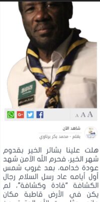 يذكر أن مقال الزميل محمد برناوي حطي بمتابعة واسعة على مستوى المملكة والوطن العربي خصوصا من قبل الكشافة والمرشدات