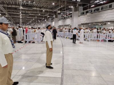 يقضى أبناؤنا الطلاب المنتمون للنشاط الكشفي هذه الأيام أجواء روحانية مليئة بالجهد والعمل والعطاء، ويجمعون بين الدراسة صباحا والعمل في خدمة مرتادي بيت الله الحرام من الزوار والمعتمرين والركع السجود مساء، ويؤدون مهامهم بهمة إليه، وروح راضية، متذرعين بتوجيهات وتعليمات قادتهم المتواجدين معهم في الميدان جنب إلى جنب