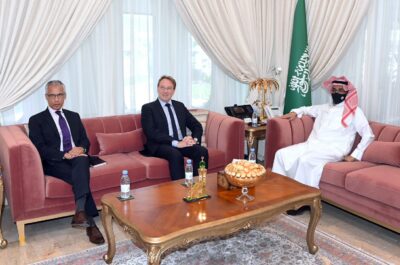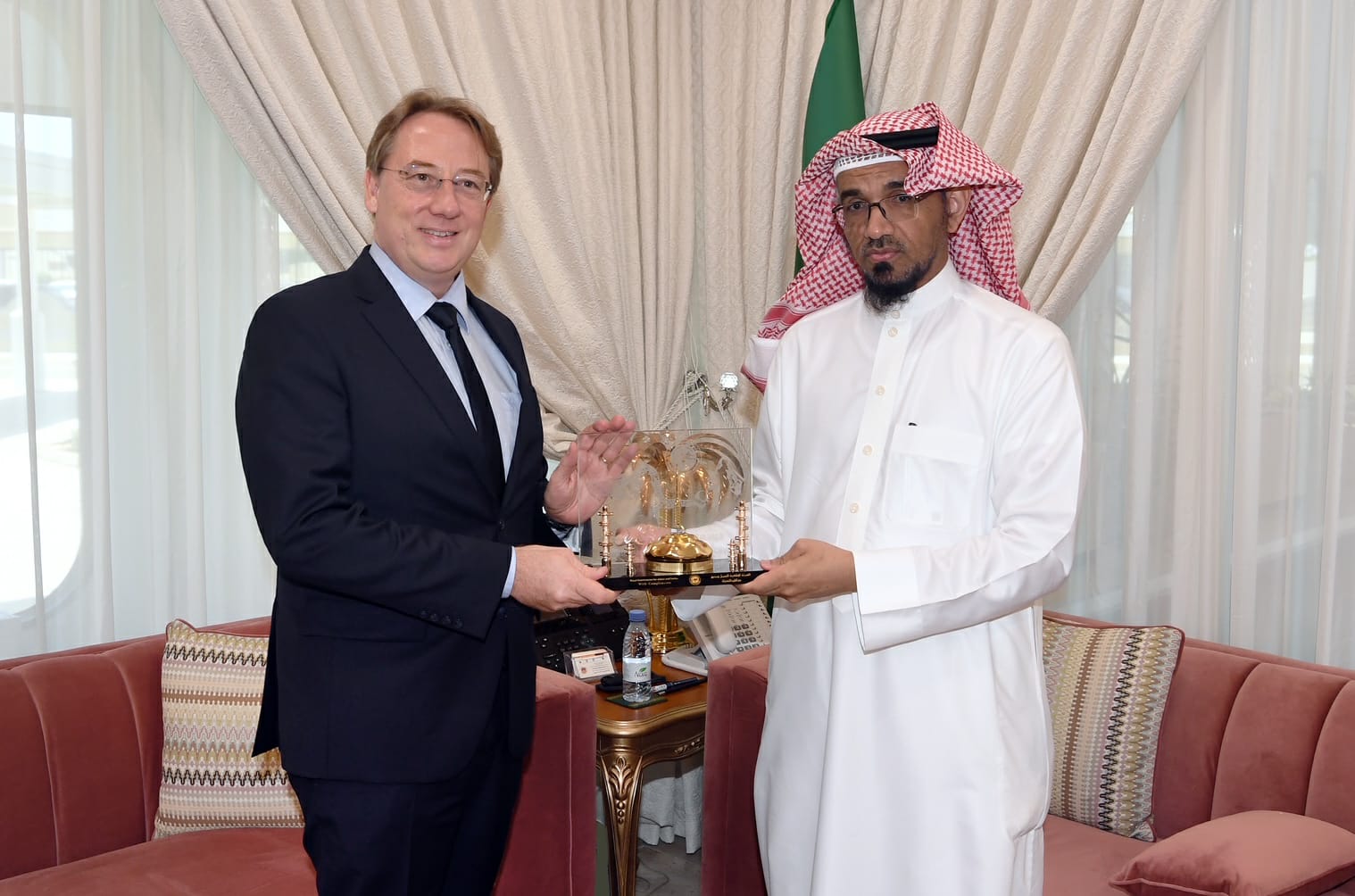 استقبل الرئيس التنفيذي للهيئة الملكية بينبع الدكتور فهد بن ضيف الله القرشي بمقر الهيئة الملكية بينبع سعادة السفير الفرنسي لدى المملكة السيد “لودوفيك بويّ” ، مثمناً زيارته التي حظيت بها الهيئة الملكية ، جرى خلال اللقاء عرض الامكانيات التي تمتلكها بيئة ينبع الصناعية الاستثمارية وما تتميز به من تجهيزات وخدمات متطورة ، كما تم خلاله مناقشة الشؤون ذات العلاقة.