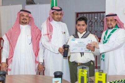 كرم المشرف بمكتب تعليم جنوب مكة المكرمة الدكتور عبدالرحمن العمري كشافة مدرسة هشام بن حكيم المتوسطة بمكة المكرمة المميزين : عمر أحمد هوساوي ، وبسام محمد الفهمي ، وعبدالرحمن عطيه الزمزمي ، وحسام تركي الحارثي ، و عمران صالح الزهراني ، وعبد الكريم محمد با ريان ، وفيصل حسن الشريف وعبدالرحمن حسين الحميد ، بحضور مدير المدرسة محمد النمري وقائد الفرقه مبارك عبدالله القرني وذلك تقديرا لدورهم وتميزهم ومشاركتهم مع مركز “بادر” للاعمال التطوعية بالحرم المكي الشريف