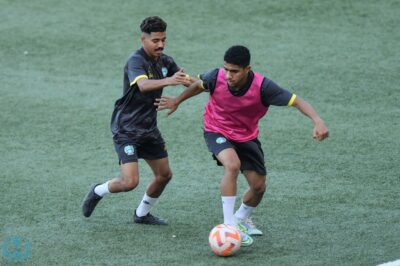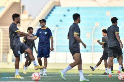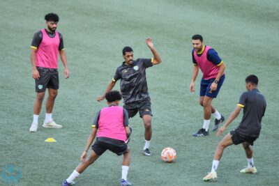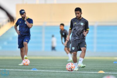 فيما بدأ اللاعبين السعوديين فيصل الجمعان وصالح الزابن البرنامج التاهيلي اثر الاصابة التي لحقت بهم بالجري حول المضمار تحت اشراف طبيب النادي الدكتور عباس العزازي.
