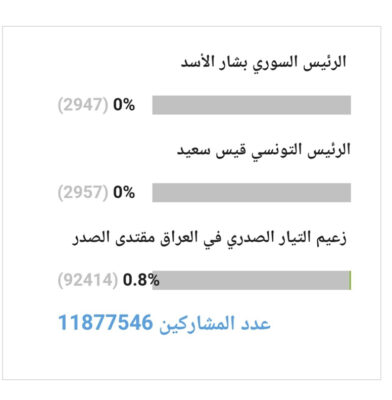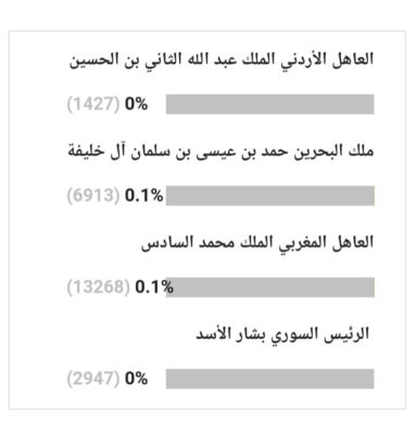 وجاء ترتيب مراكز باقي القادة العرب المشاركين في الاستطلاع على النحو التالي: