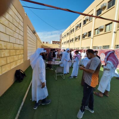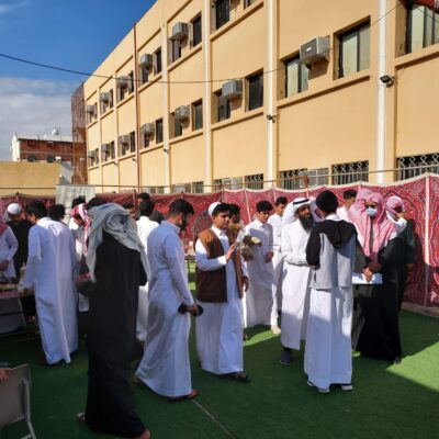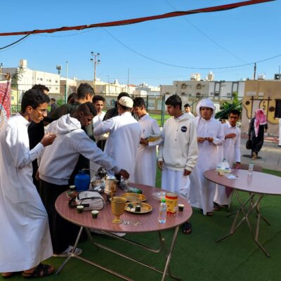 تفاعل طلاب مدرسة أبي أيوب الأنصاري الثانوية بضاحية الشرائع شرقي مكة المكرمة من نشاط ركن القهوة السعودية الذي أقامه رائد النشاط بالمدرسة الأستاذ صالح بن راشد الزهراني اليوم الأربعاء