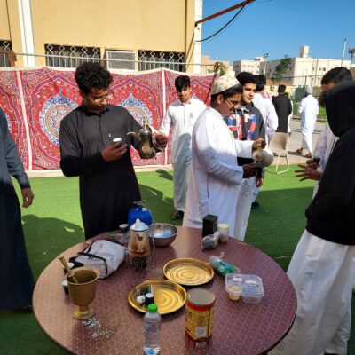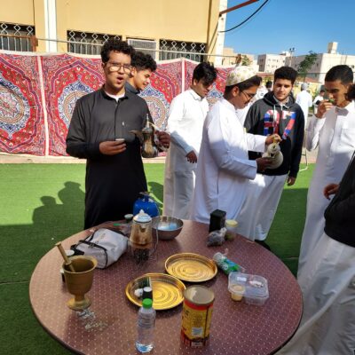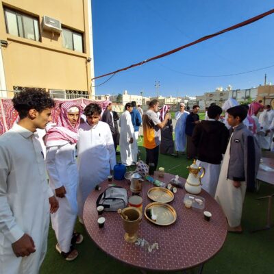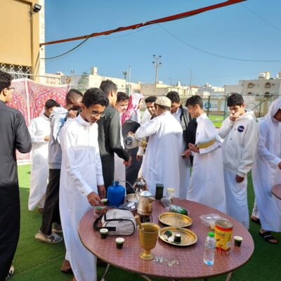 ومن جانبه رحب رائد النشاط الأستاذ صالح الزهراني بأبنائه الطلاب وزملائه المعلمين والإداريين في ركن القهوة، مؤكدا أن هذا الركن يقام بمناسبة الاحتفال بيوم القهوة السعودية، مشيرا إلى أن القهوة السعودية باتت موروث شعبي يعرفه الجميع إذا تشهد بلادنا انتشارا واسعا لها وباتت تنتج، موضحا أن القهوة السعودية هي وطنية بامتياز حيث تتم زراعتها في بعض مناطق المملكة، ويقبل الناس على تناولها في مناسباتهم، وفي حياتهم اليومية