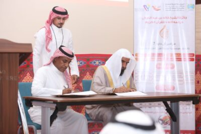 ثم ألقى المدير التنفيذ لجمعية تحفيظ القرآن بالأحساء “خير” الدكتور سليمان بن إبراهيم الحصين كلمة تطرق فيها إلى شراكة الجمعية المجتمعية مع نادي الجيل والتي تأتي في ضوء ما يحمله النادي من رسالة اجتماعية وثقافية لفئة الشباب، وما تحمله الجمعية الخيرية لتحفيظ القرآن الكريم بالأحساء من أهداف سامية، كونها إحدى المؤسسات الخيرية الرائدة في خدمة كتاب الله تعالى بإقامة البرامج المختصة بحفظه وتلاوته، ولما يحققه التعاون والشراكة بين المؤسسات خاصة كانت أو حكومية أو خيرية من أثر إيجابي في تفعيل الدور المجتمعي لها بتقديم الخدمة المناسبة لأفراد المجتمع.