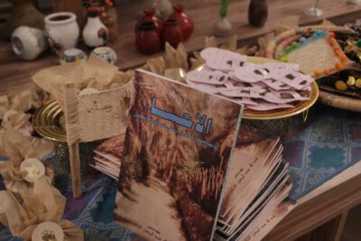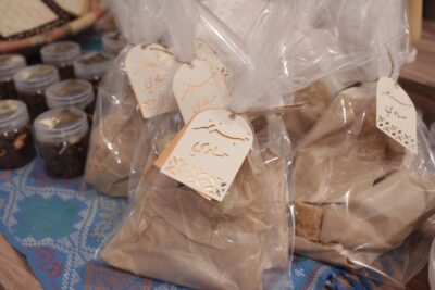 ومن ثم دعوتهنّ لتناول الغبقة الرمضانية التي شملت أكلات حساوية و بعض الفعاليات كالحناء و عمل خبز المسح الحساوي على التّاوة وتوزيع بعض الإهداءات و منها نموذج جصي لزخرفة الطعامة الحساوية.