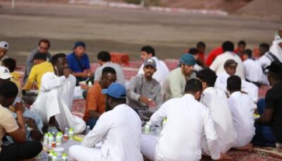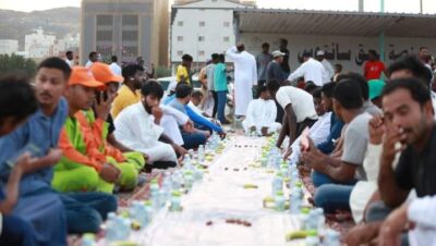 أجتمع مساء اليوم الخميس أكثر من 300 صائم من الرياضيين وأعضاء اللجنة المنظمة والمعتمرين والمارة، وعابري السبيل، على مائدة الإفطار الرمضانية الجماعية التي أقيمت صدقة عن أرواح الراحلين من الرياضيين والتي أقامتها اللجنة المنظمة لبطولة “سانتوس13 الرمضانية” التي تدور رحاها هذه الأيام على ملعب الفريق في حي الحمراء غرب مكة المكرمة ضمن برنامج لجنة المسؤولية المجتمعية بالبطولة