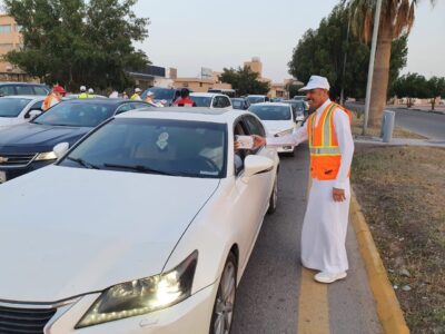 وحضر الذكر الله، ووفد من أعضاء الهيئة، إلى مقر تعبئة وتغليف الوجبات في الصالة الرياضية بجامعة الملك فيصل بالأحساء عصر أمس، وقبل موعد الإفطار بنصف ساعة، انتقلوا إلى نقطة التوزيع في إشارة تقاطع الجامعة والإدارة العامة للتعليم، وشاركوا في توزيع 700 وجبة إفطار مخصصة في هذه النقطة.