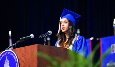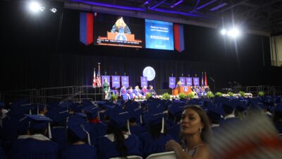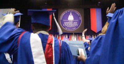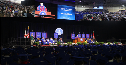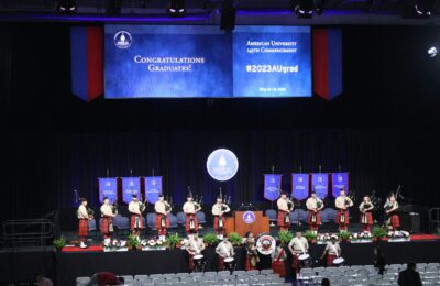 أَقَامَتْ الجامعة الأمريكية “AMERICAN UNOVERSITY” ظهر اليوم السبت وعند الساعة ال12:30 منتصف النهار حفل تخرج طلابها الـ145، بحضور جمع غفير من طلاب الجامعة للمشاركة في حفل تخرج ربيع 2023، وأحتشد في صالة بندر أرينا “Bender Arena” في حرم الجامعة عشرات الحاضرين من ذوي الطلاب وأقاربهم لمشاركتهم فرحة التخرج وجنى ثمار الصبر والمثابر لأعوام عديدة، وأخذ الخريجون موقعهم في صدر القاعة أمام المنصة الرئيسية في الصالة يحيطهم الجمع الغفير في مقاعد ومدرجات الصالة في منظر مهيب للغاية