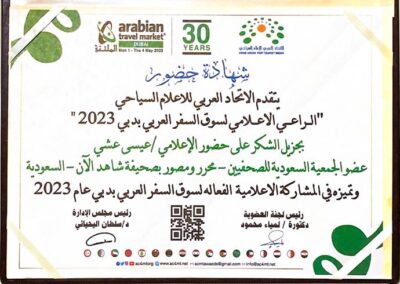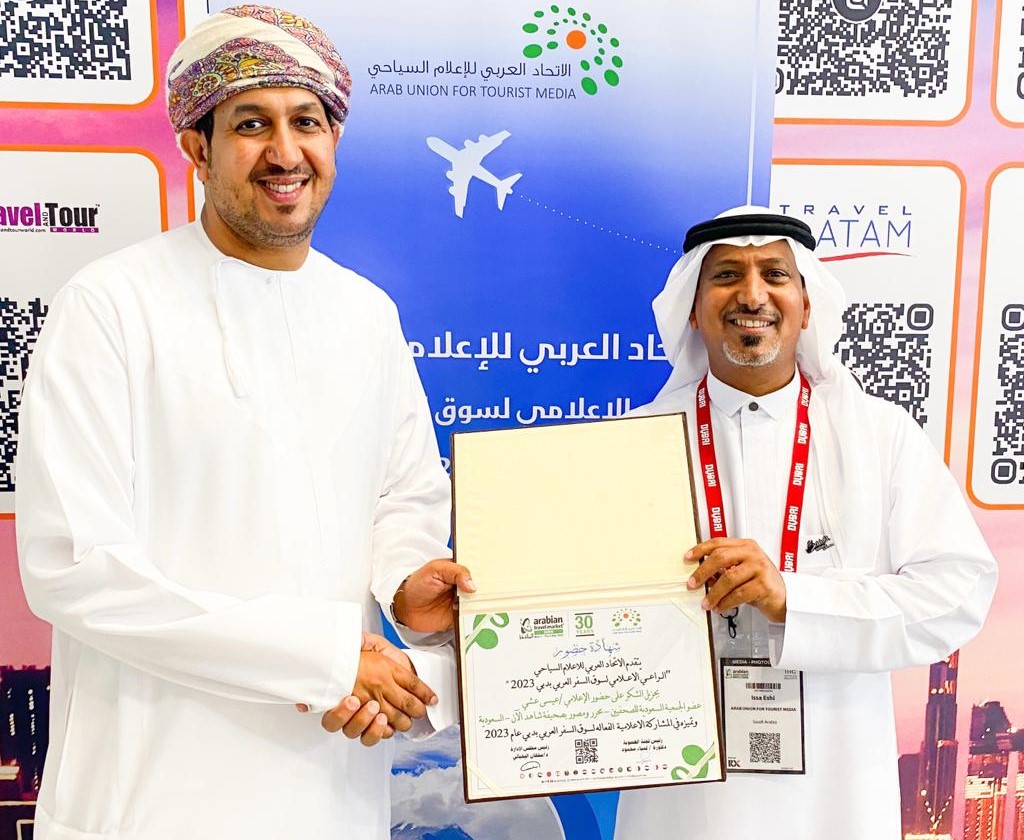 كرم رئيس مجلس إدارة الاتحاد العربي للإعلام السياحي الدكتور سلطان اليحيائي، الزميل عيسى عشي في ختام سوق السفر العربي دبي 2023 الذي أقيم في الفترة من 1-4 مايو الجاري، نظيره ما قدمه من جهد خلال أيام المعرض