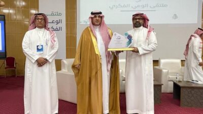 ، وقدّم شكره لمحافظ بيشة على رعايته لهذا الملتقى ، ليبد بدأ الملتقى بالترحيب بالمشاركين فيه بأوراق عمل وهم : المستشار والمشرف العام على مركز الوعي الفكري بوزارة التعليم الدكتور فهد بن مطلق العتيبي ويُشارك بورقة عمل عنوانها ” الوعي الفكري الوطني ورؤية المملكة 2030 م” ، و استشاري الطب النفسي وعلاج الإدمان بمجمع إرادة والصحة النفسية الدكتور فيصل بن تركي المعاوي ويُشارك بورقة عمل عنوانها “إدمان المخدرات ؛علاجه ومستقبله ” ومدير شعبة الأمن الوقائي بشرطة محافظة بيشة الرائد خالد بن محمد الشهري ويُشارك بورقة عمل عنوانها ” خطورة حمل السلاح ” ، ثم اُختتم الملتقى بتكريم الجهات المشاركة في الملتقى من محافظ بيشة الدكتور عبدالرحمن بن عبدالله آل حامد وبحضور مدير التعليم ؛ والذي بدوره أشاد بالملتقى والمتحدثين فيه وما يملكونه من خبرات أثرت الملتقى بأوراق عمل مميزة انعكست على الحضور ، ثم قدّم محافظ بيشة شكره وتقديره لسعادة مدير التعليم على التنظيم الذي كان أنموذجًا مميزًا لهذا الملتقى على كافة الأصعدة سواءً على مستوى الضيوف وأوراق العمل أو على الحضور المميز الذي شاهده في مركز الأمير منصور بن مقرن الثقافي وقدّم شكره لفريق العمل الذي يقف خلف نجاح هذا الملتقى بتعليم بيشة .