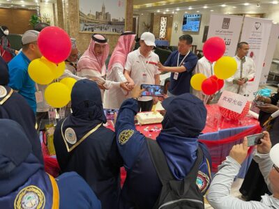 شاركت فرقة رائدات مكتب رواد مكة مساء يوم الأول من أمس في استقبال نحو 600حاج صيني، مساندين لمكتب الخدمة رقم 99